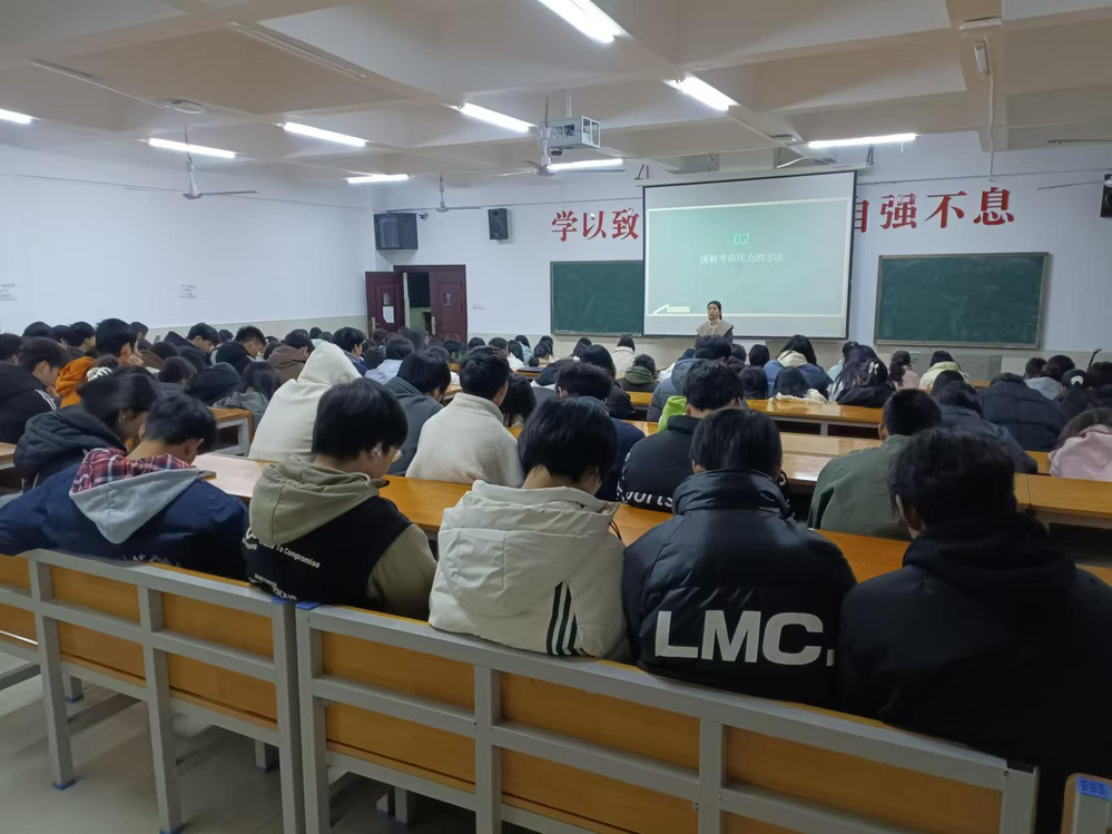 随着期末考试的临近,同学们感受到了巨大的考试压力。为了帮助同学们正确认识和应对考试压力,提高学习效率,辅导员柳菲老师决定于1月5日在110教室举办一场以.用积极心态导航,让考试之路顺畅为主题的班会。