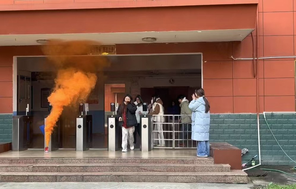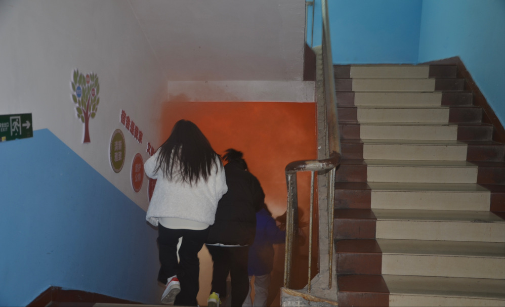 随着消防警报声响起,楼道烟雾弥漫,消防演练正式拉开帷幕。在演练过程中,参练人员捂住口鼻,弯腰低姿,快速有序地沿着寝室绿色通道向安全区域撤离。短短几分钟内,全体参练人员便安全撤离至指定集合点。同学们在演练环节有效配合、井然有序,完成了预设的目标,提升了同学们对处理消防应急和应对突发事件的能力。