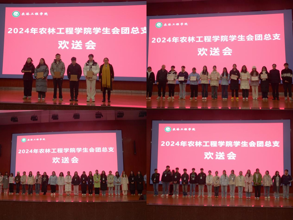 为增强学生会成员的凝聚力,表达对学生会中即将毕业的学长学姐们的感激,农林工程学生会团总学生会欢送会于12月12日晚在新培楼学术报告厅圆满落幕,出席本次欢送会的有农林工程学院党总支书记王冬青,副院长谢大识、王琦,张文泉博士,曾旭老师以及农林工程学院22、23、24级学生会全体成员。