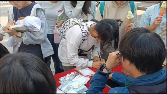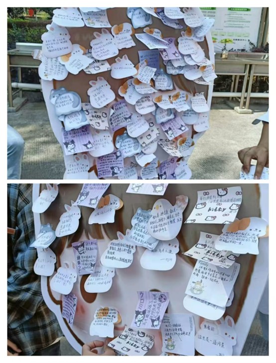 活动现场中五彩斑斓的花朵错落有致地摆放着,仿佛在等待着一个个动人的故事的到来。现场的亦是气氛十分火热,同学们一个个争先恐后的参与活动,期待着拿到属于自己的独一份鲜花。一张张小小的便签,承载着同学们动人与向上的话语。