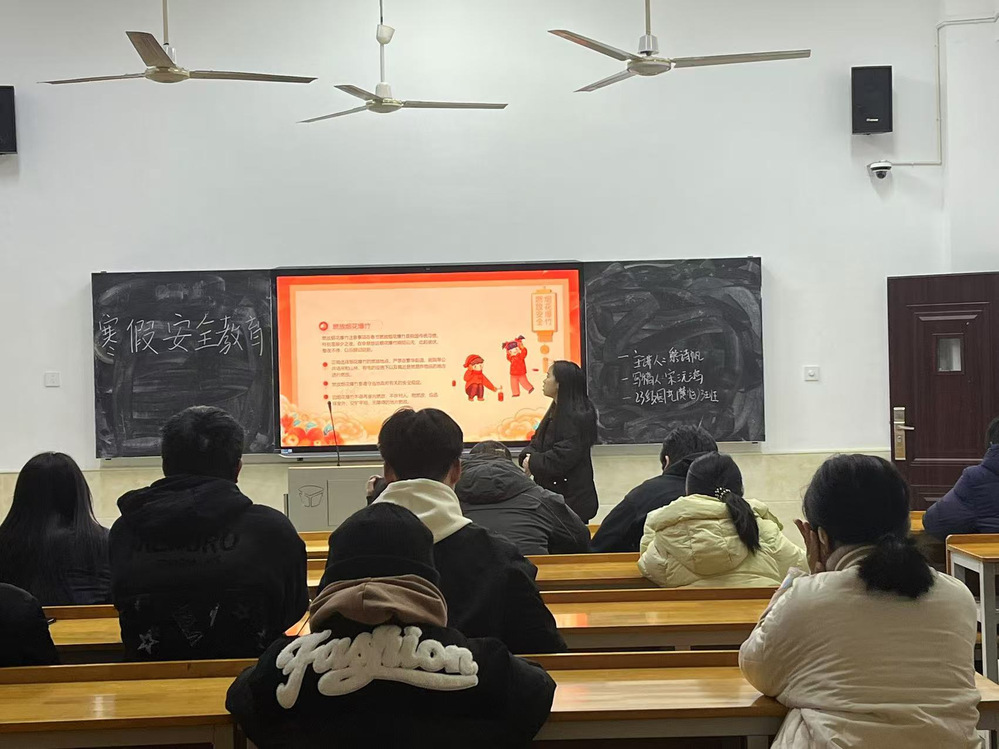 由于临近寒假假期,为了增强学生在寒假的安全意识,2025年1月5号23级园艺楚怡3班在主教楼104 开展了关于“寒假安全教育”的主题班会活动。会议内容由熊诗帆主持。