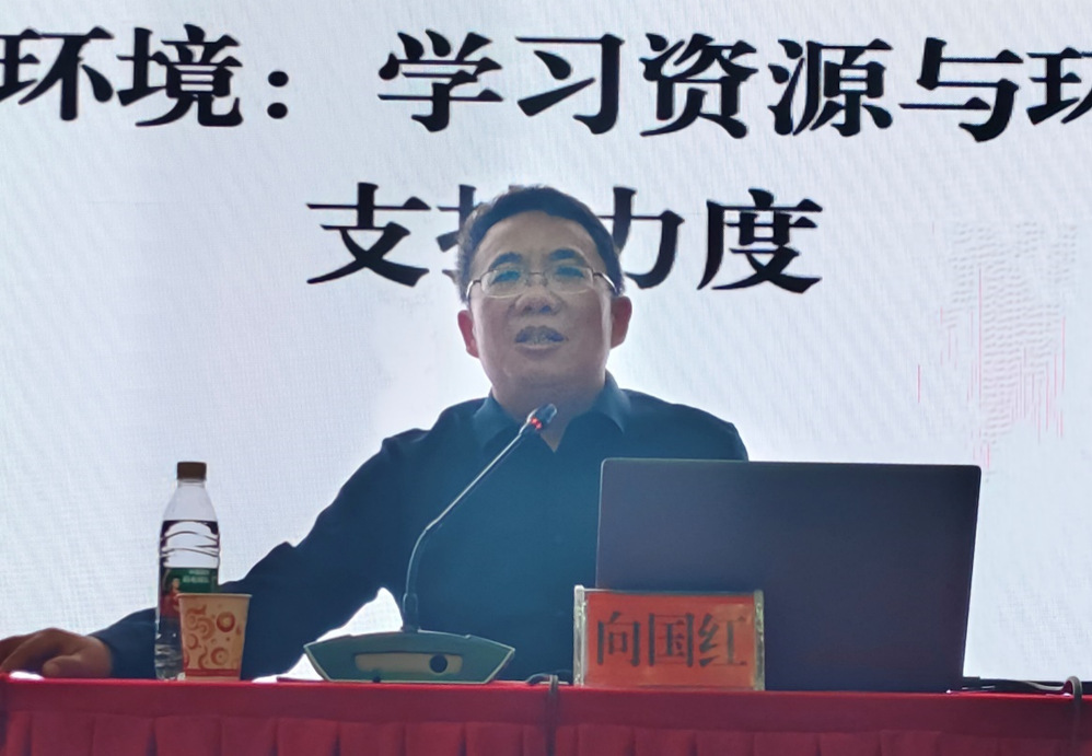 向国红教授从教师的“教”与学生的“学”两大维度出发,深刻阐述了当代高校师生如何在课堂中扮演好自己的角色,如何在学习中发挥最佳效能。他首先围绕“教”字展开,详细讲述了湖南人文科技学院与娄底职业技术学院的办学历史和深厚底蕴,同时分享了当代大学在教学内容与教学方式上的改革举措,强调优秀的课堂是由教师和学生共同构建的结晶。随后,向教授详细剖析了大学生如何在校园生活中扮演好自己的角色,回答了诸如“如何成为一名优秀的大学生”、“大学究竟学什么”、“应该如何学”等关键问题,为在座的学生们明确了前进的方向。
