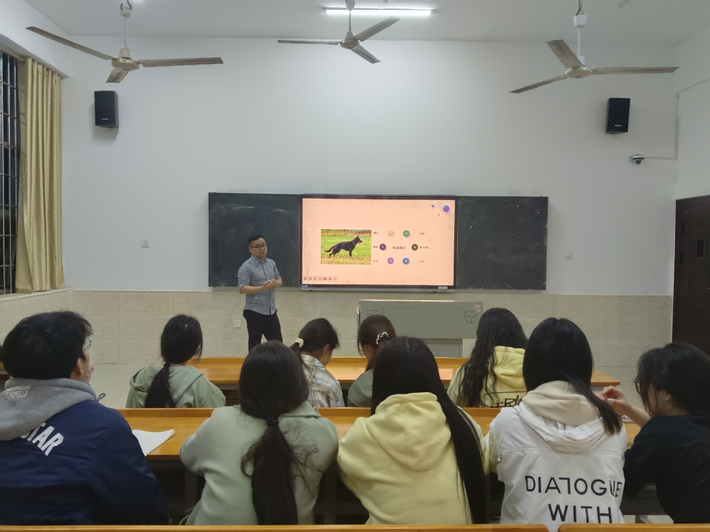 课堂上,王先坤老师以动物行为的基本概念为切入点,借助丰富的案例和生动的视频,详细阐释了动物的觅食、防御、繁殖等行为,帮助同学们深入理解科学研究方法在动物行为学中的实际应用。在互动环节,同学们踊跃提问,围绕流浪猫和流浪狗的领地行为等议题展开热烈讨论,现场气氛活跃。