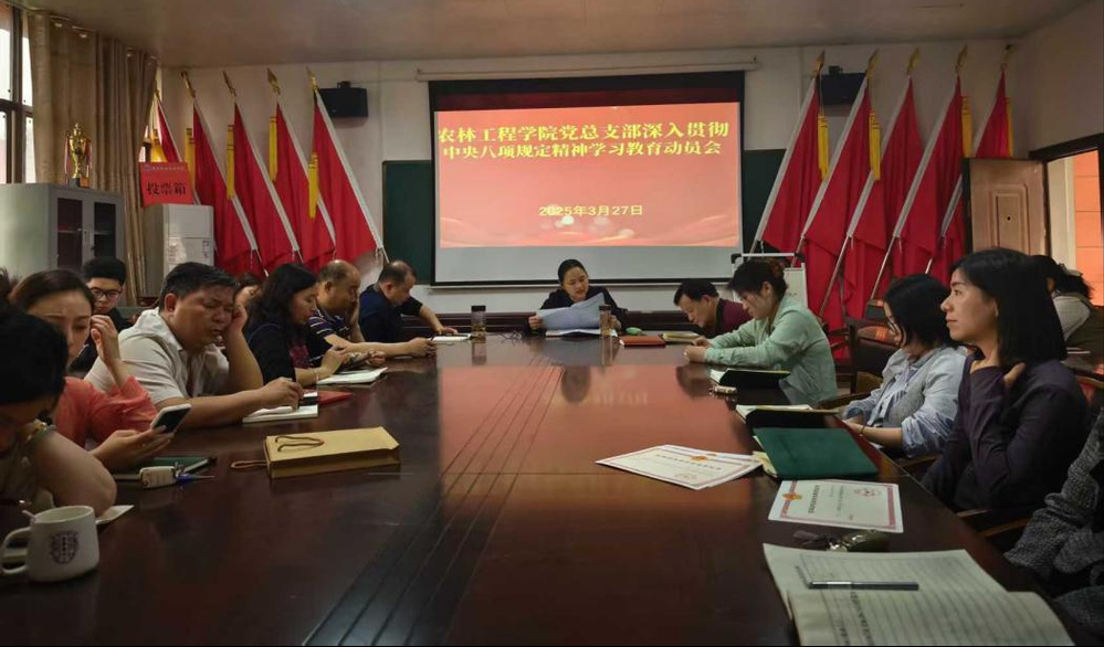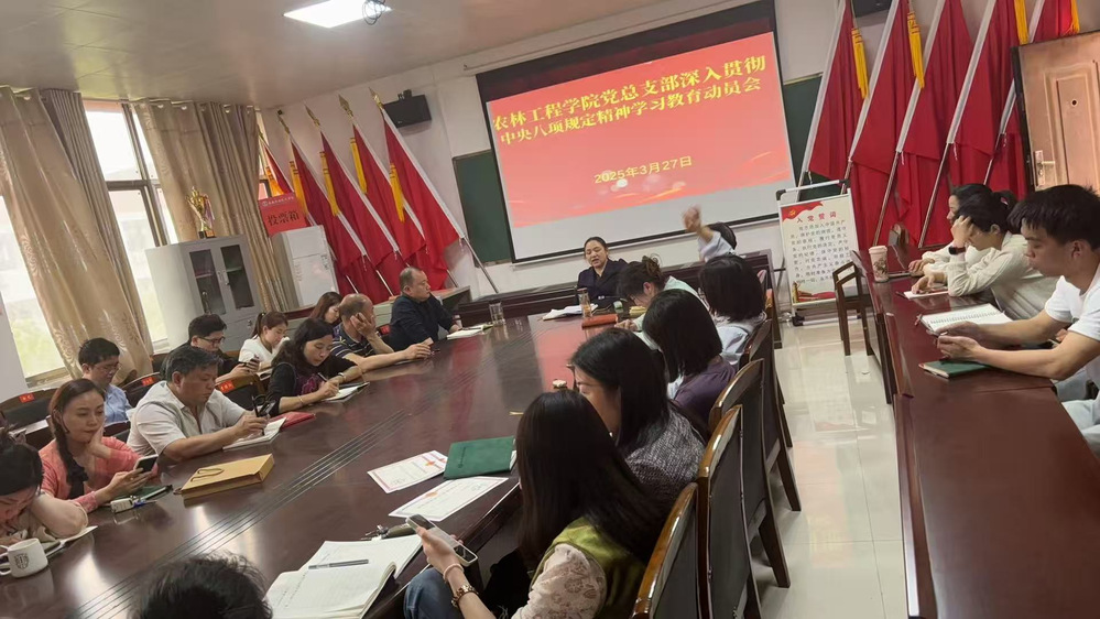 为积极响应全面从严治党号召,深化党纪教育,强化党员干部的纪律观念与规矩意识,3月27日下午,农林工程学院党总支部以高度的政治责任感,精心策划并召开了中央八项规定精神学习教育动员大会。此次盛会,不仅是对党纪国法的庄严宣誓,更是与第四批全国党建工作“样板支部”建设及全国“双带头人”教师党支部书记“强国行”行动团队建设的深度融合,旨在以党建为引领,推动学院各项工作再上新台阶。