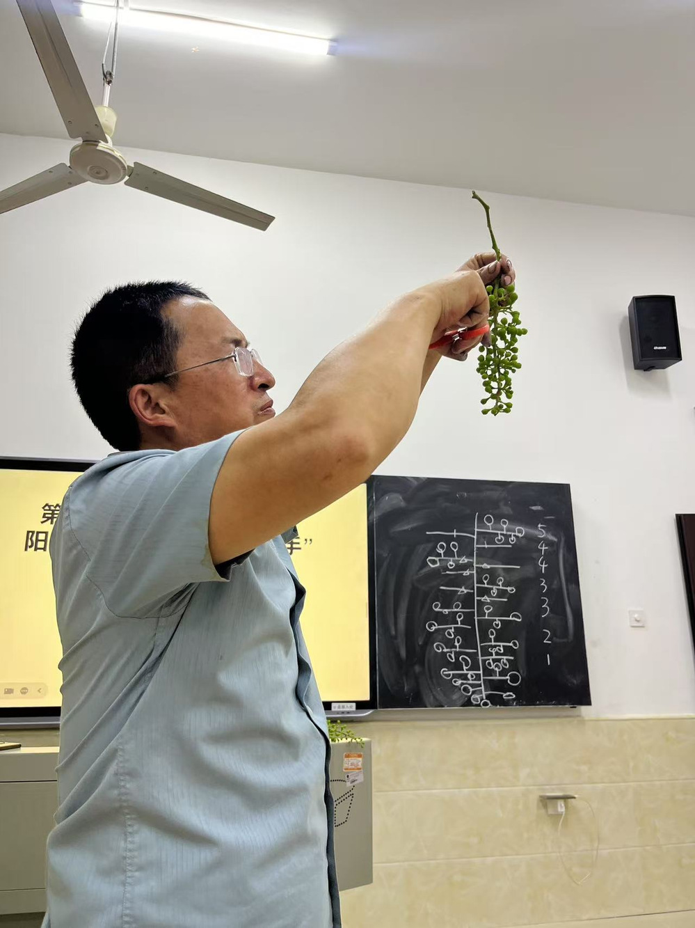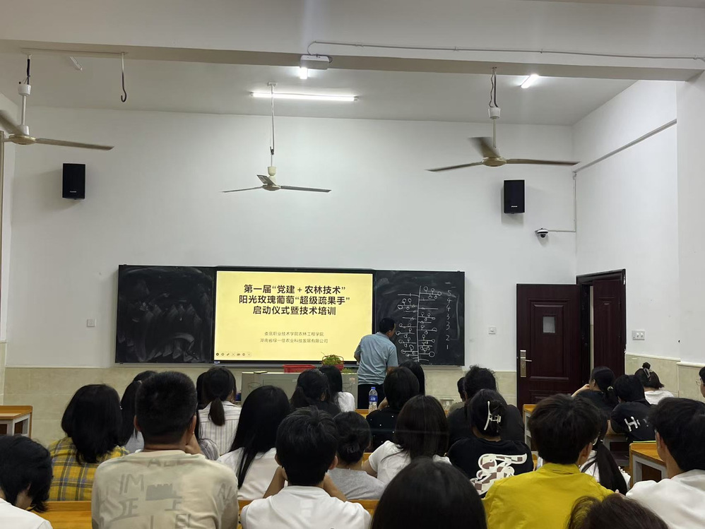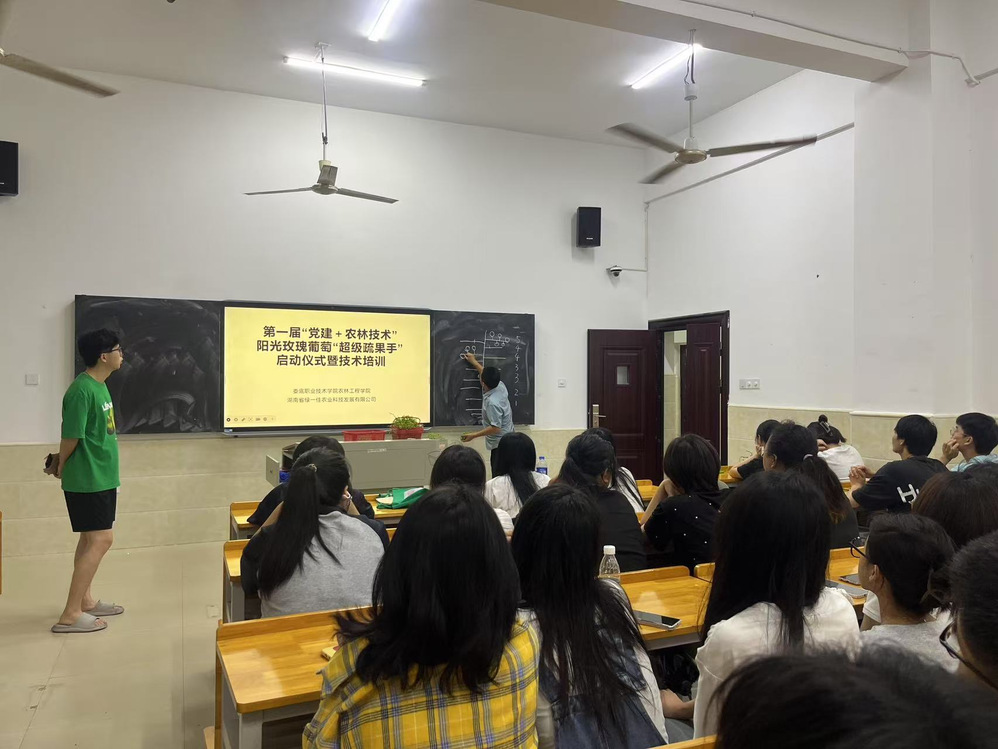 5 月 15 日晚 7 时 30 分,主教楼 105 教室灯火通明,曾玉华教授带领同学们,共同开启了第一届“党建+农林技术”阳光玫瑰“超级蔬果手”技术培训启动仪式,本次活动将党建与专业实践深度融合,为农林实践注入了新的活力与希望。