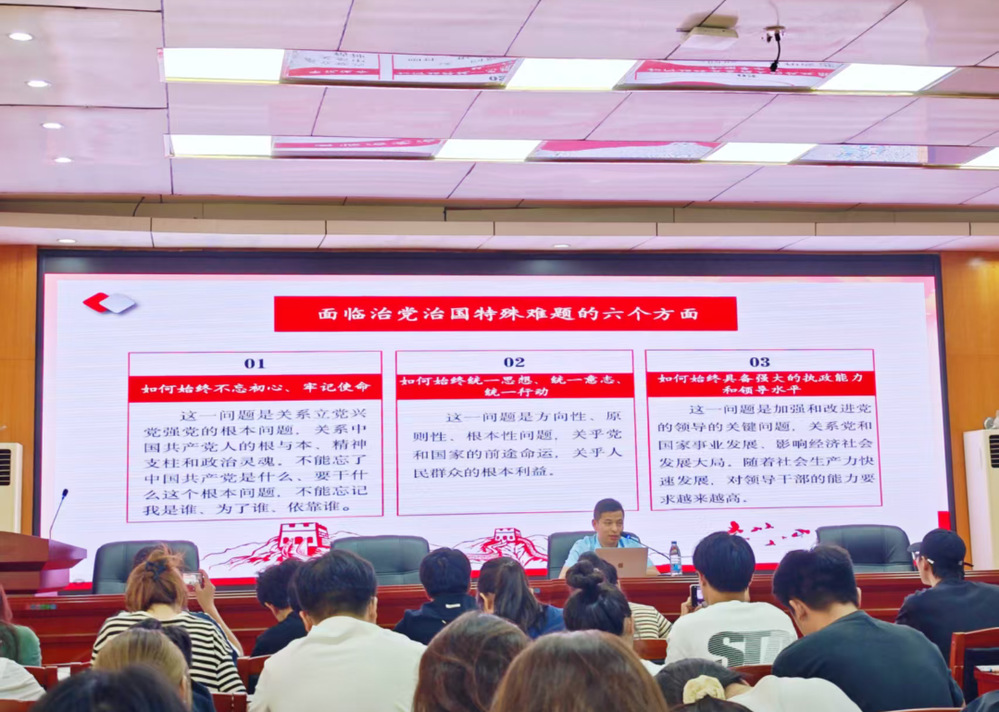 图3 钱朝军向同学们深入讲解我们党面临着治党治国的六个特殊难题