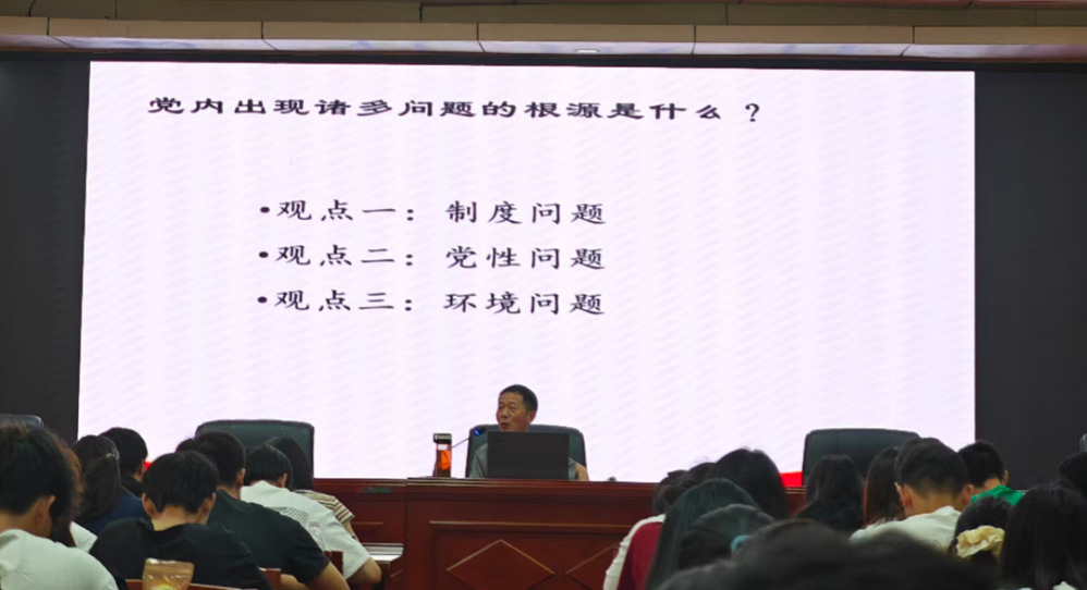 图1 龙玉林从三个方面向同学们讲解党内问题的根源