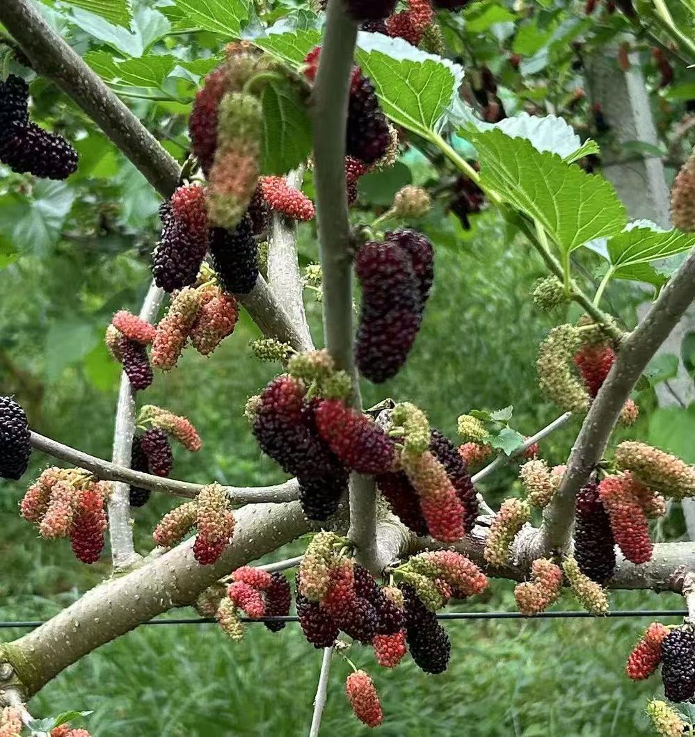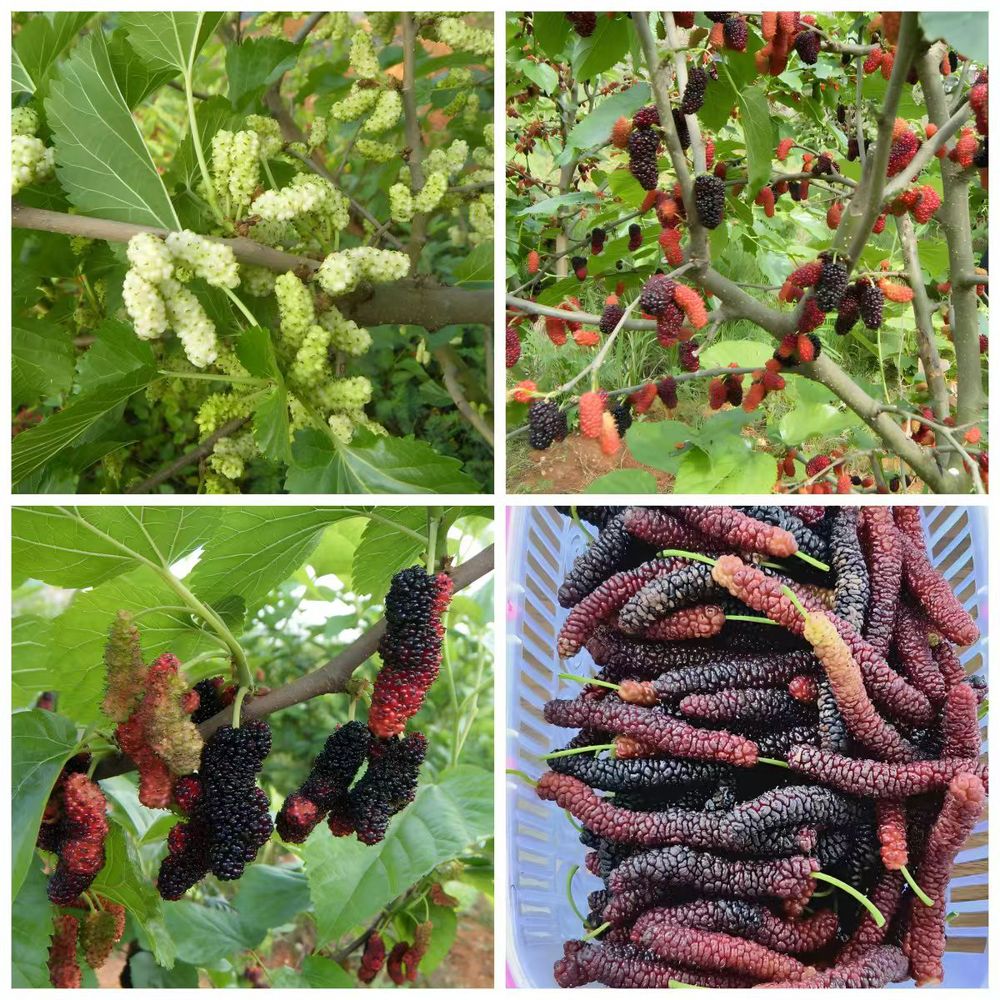 桑椹果园中饱满鲜嫩的白玉王果桑、大十果桑、红果2号果桑、台湾长果桑