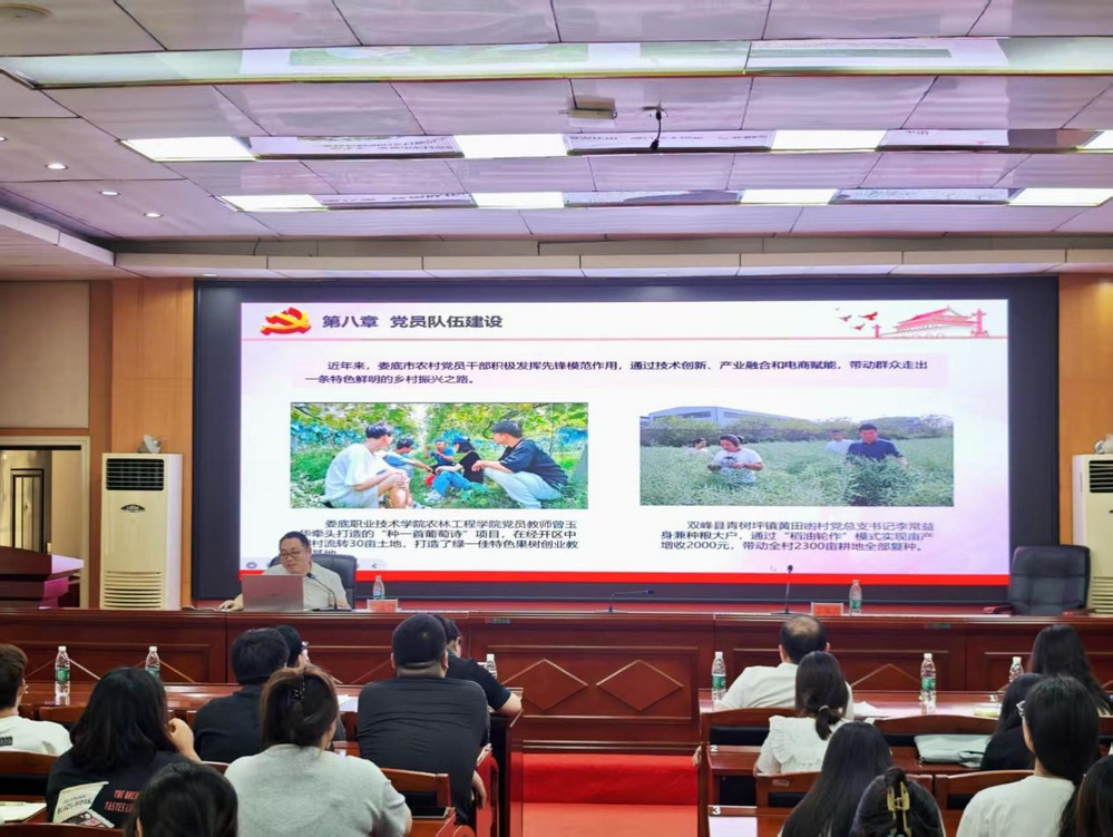 为深入学习贯彻落实《中国共产党农村基层组织工作条例》,6月13日,一场紧扣新时代农村基层组织工作的专题讲座于主教楼多功能报告厅隆重举行。本次讲座由娄底职业技术学院农林工程学院党总支书记王冬青主持,特邀中共娄底市委组织部组织一科科长吴孟贤倾情主讲。学院班子成员王琦、谢大识副院长、农村新型经济组织管理教研室、园林园艺教研室专业教师,农管专业高职学生及“楚怡工匠计划”24级学生参加。