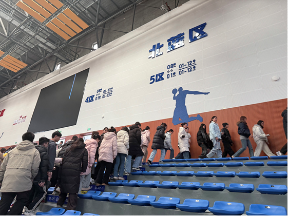 演练正式启动后,新体育馆内模拟火情突发,现场迅速弥漫模拟烟雾,消防警报同步拉响。在身着迷彩服的安保人员专业引导下,师生们严格遵循预定疏散方案,保持弯腰捂鼻姿势,快速有序地从体育馆各出入口撤离。整个过程中,全体人员沉着冷静、互不推挤,从场馆观众席到室外安全区域,仅用时数分钟便全部安全集结至指定地点,圆满完成疏散任务。