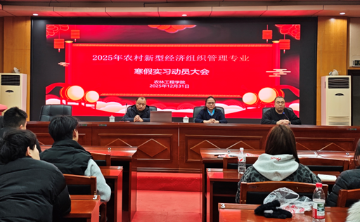 2025年12月31日,农林工程学院组织召开2025级农村新型经济组织管理专业寒假实习动员大会。学院领导、专业教师及全体实习学生参加会议,会议围绕实习任务、实践方法与纪律规范进行了全面动员与部署。