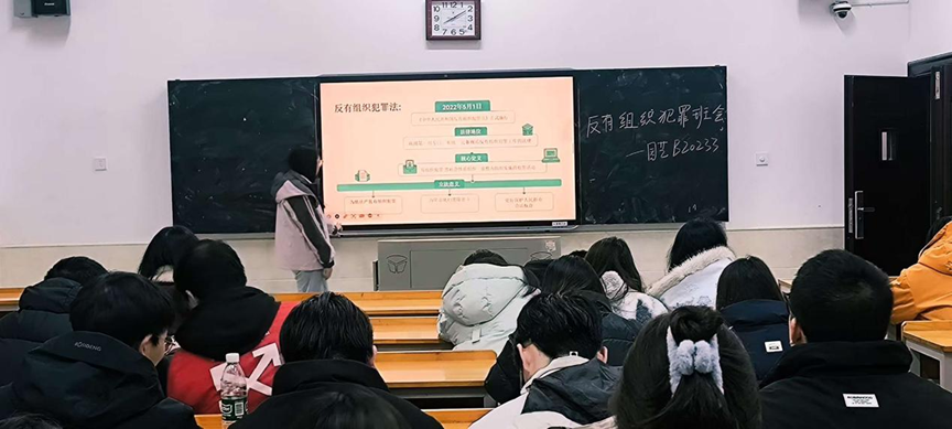 针对大学生群体易遭遇的风险,欧阳辉同学在班会上重点讲解了校园贷、非法传销、出租出借账户等涉组织犯罪隐患的识别要点,并结合校园贷陷阱、出租银行卡构成帮信罪两个典型案例,直观剖析了犯罪手段与法律后果,让同学们深刻认识到此类行为的危害性。同时,她还明确了参与、协助有组织犯罪的相关法律红线,告知同学们此类行为不仅会面临有期徒刑、罚金等处罚,还会留下终身犯罪记录,影响升学、就业与出国。