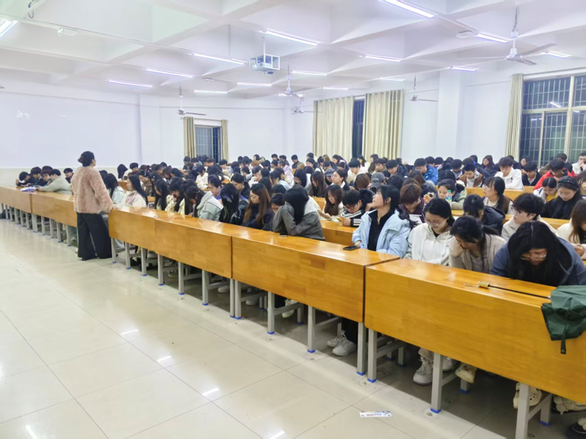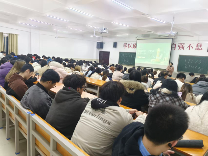 会上,柳菲老师围绕寝室安全与防诈骗安全两大核心展开讲解。在寝室安全方面,她结合真实案例,重点强调了违规电器使用,消防安全,人身财产安全等问题。她提醒同学们严禁在宿舍内使用大功率电器,不私拉乱接电线,离开宿舍时务必切断电源,关好门窗。同时要妥善保管个人财物,贵重物品随身携带,不在宿舍存放大量现金,避免给不法分子可乘之机。在防诈骗安全方面,柳菲老师结合娄星区真实案例开展警示教育。2026年3月18日,黄泥塘街道高溪社区发生一起网络交友电信诈骗案件。居民看到网站约见女性广告后,点击链接下载虚假交友软件,骗子以充值车费,保密认证为由诱导转账,又以操作失误审核失败,需修复数据为借口,让受害人多次转账,最终被骗46700元。