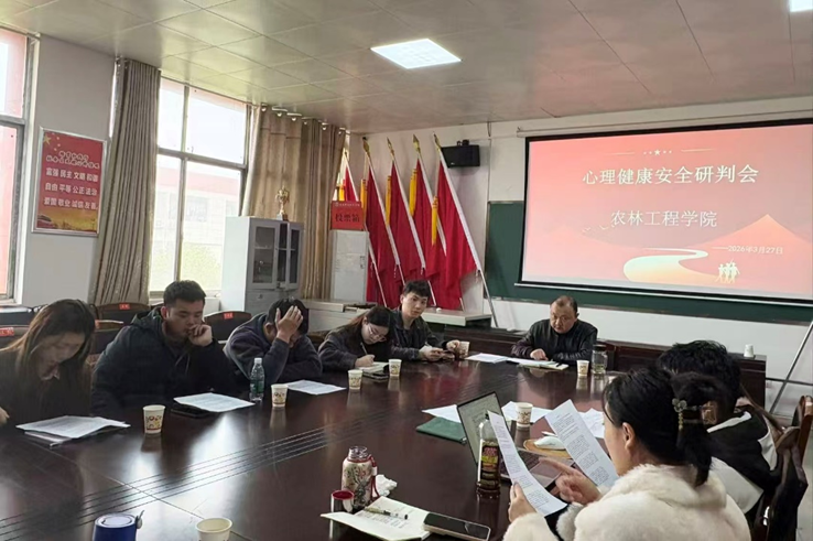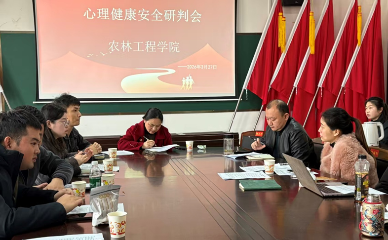 为进一步夯实学院心理健康教育工作基础,精准研判学生心理动态,有效防范化解心理危机,3月27日,农林工程学院在新培楼514会议室召开心理健康安全研判会,学院党总支书记王冬青、副院长王琦及全体辅导员参会,心教中心曾晓东老师和陈静老师应邀出席。