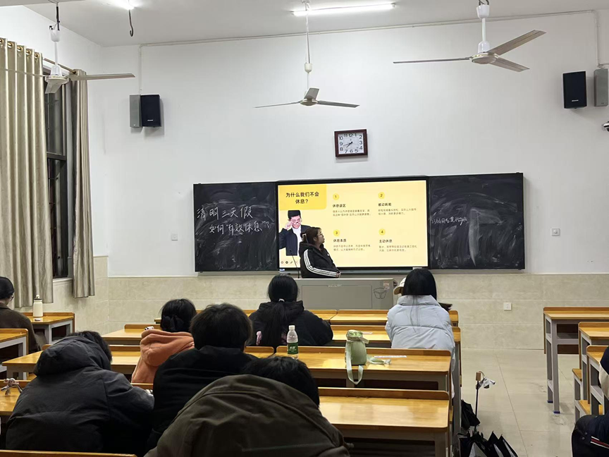 本次主题班会的召开,不仅为同学们提供了科学、可落地的清明假期休息指南,更引导大家树立了健康的生活理念,帮助同学们在兼顾传统民俗与休闲放松的同时,实现真正高效的身心充电。相信同学们将以本次会议为指引,合理规划清明假期,在春日里舒缓身心、积蓄力量,以更饱满的精神状态投入到后续的学习与生活中。