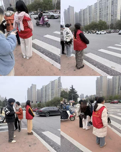 活动中,志愿者身着统一志愿服装,化身文明 “守护者”,分赴校园内及校门口十字路口服务。校内,他们聚焦禁烟宣传与不文明行为劝导,提醒师生遵守校园文明规范,劝阻乱扔垃圾等行为;校门口十字路口,志愿者坚守交通劝导岗位,引导行人和车辆文明通行,针对部分同学驾驶无牌无证摩托车行为开展专项劝导,讲解交通安全法规与文明礼仪知识,并做好不文明行为登记。