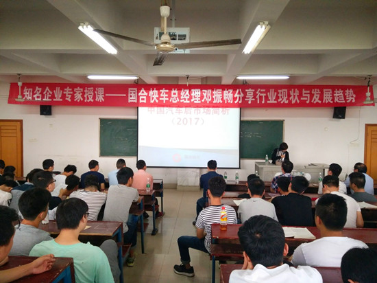 2017年6月6日上午10点,由长沙市国合快车服务有限公司总经理邓振畅女士主讲的“行业现状与发展趋势”讲座在主教楼410举行,国合快车人事部经理何锦霞,汽车学院院长易爱良等出席了本次讲座。