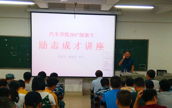 2017年9月14日,晚上七点半,汽车学院在主教楼410开展2017年新生励志成才讲座,校长朱忠义及易爱良二级学院领导等出席了本次讲座,朱忠义校长亲自主讲。