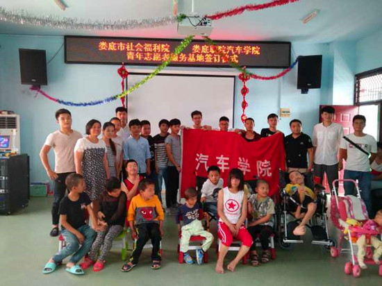 2017年9月25日,汽车学院志愿者在学院领导关心支持下来到了娄底市社会福利院,本次在学工副院长苏志华,学工干事游俊的领导下,将与福利院签约《青年志愿者基地协议书》。同时为他们送的是我们在校通过爱心义卖和一元基金等活动物资,和院里的孩子共同玩耍。