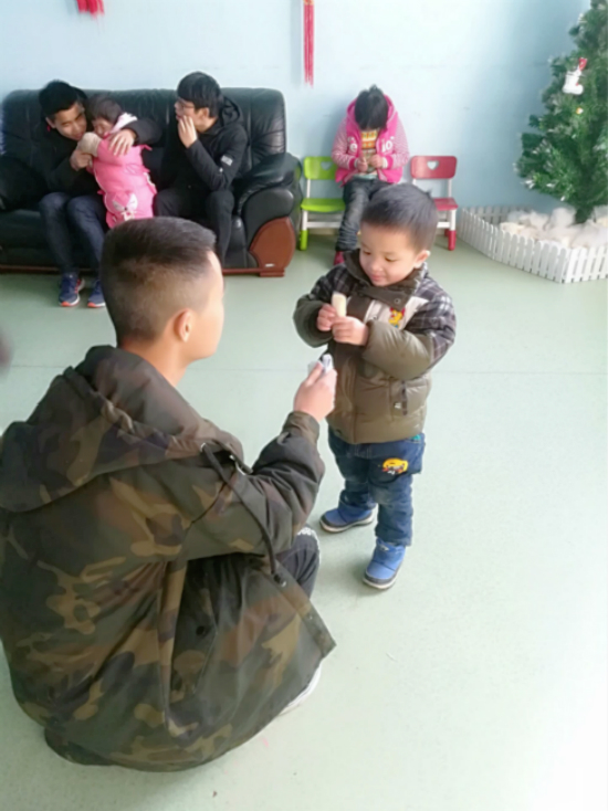 下午1点30分,志愿者们在文化广场国旗下集合开展走访福利院看望儿童活动,并为福利院的孩子们带去水果、糖果、饼干等。到达福利院,在工作人员的安排下见到了那群可爱的小朋友,活动中,许多孩子都亲切地打招呼“姐姐好”、“哥哥好”,大家也情不自禁的抱起这些可爱的小孩子,给他们发放带来的糖果、饼干、香蕉等这些小零食,然后带他们学跳舞陪他们玩,志愿者们与小朋友的欢声笑语使这个寒冷的冬天温暖无比,游戏过后志愿者们给小朋友们做了手工礼物,此时已经黄昏啦,又到了分别的时刻。志愿者们与小朋友拍了合影,留下这美好的回忆。本次志愿者走访福利院活动圆满结束。