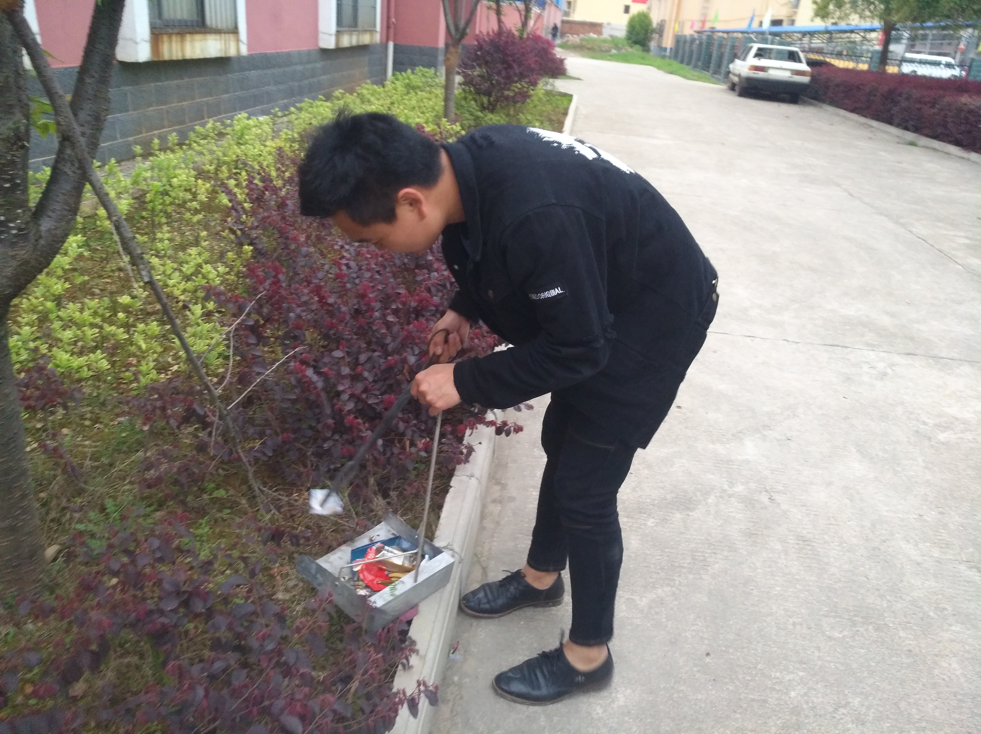 沐浴着三月的春风,感受着春天的温暖学,2018年3月25号下午,雷锋活动小组陈威、欧阳常飞在汽车学院附近区域进行卫生垃圾清理,为学校绿化尽一份绵薄之力,也借之以践行雷锋精神。