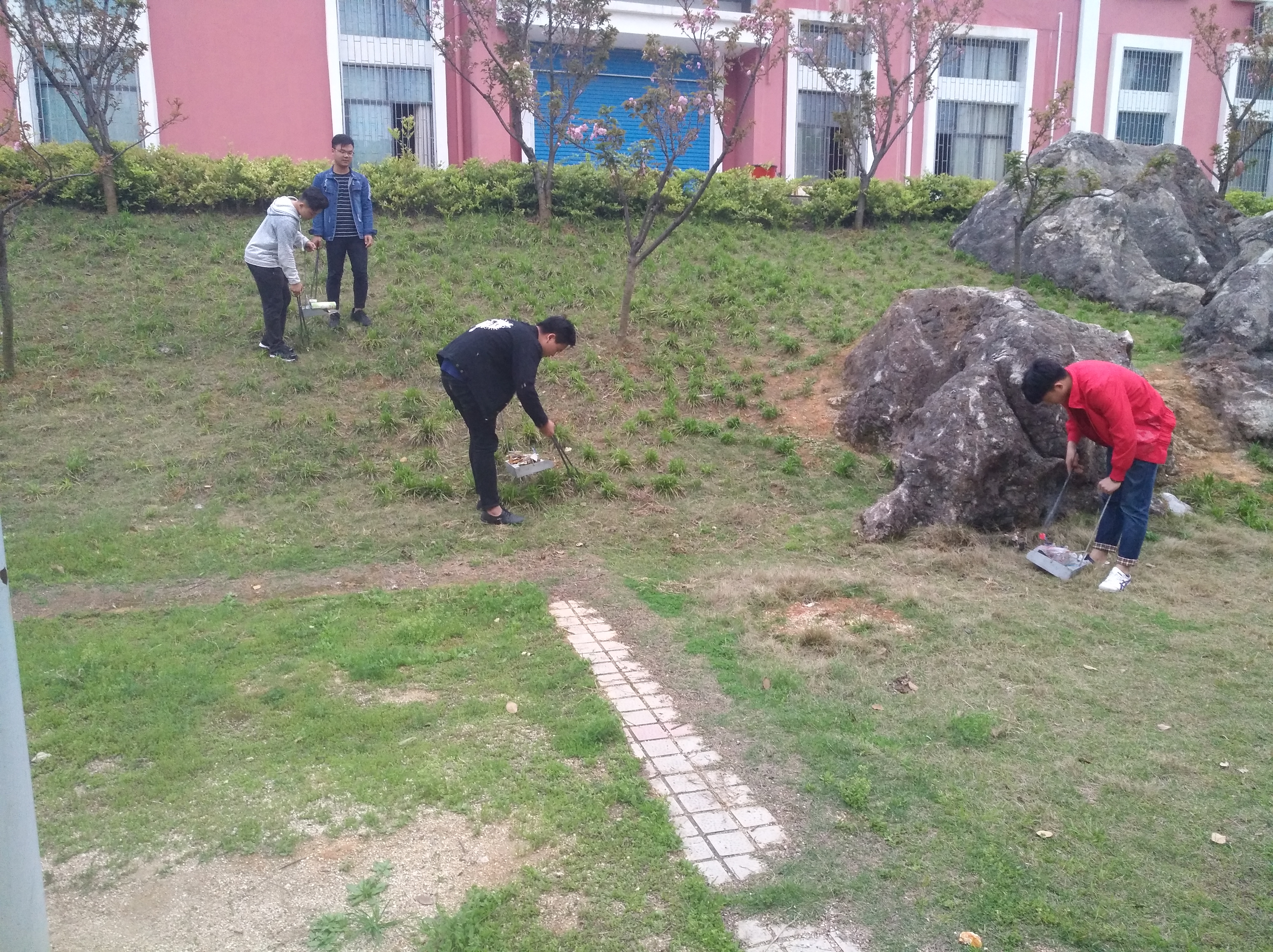 沐浴着三月的春风,感受着春天的温暖学,2018年3月25号下午,雷锋活动小组陈威、欧阳常飞在汽车学院附近区域进行卫生垃圾清理,为学校绿化尽一份绵薄之力,也借之以践行雷锋精神。
