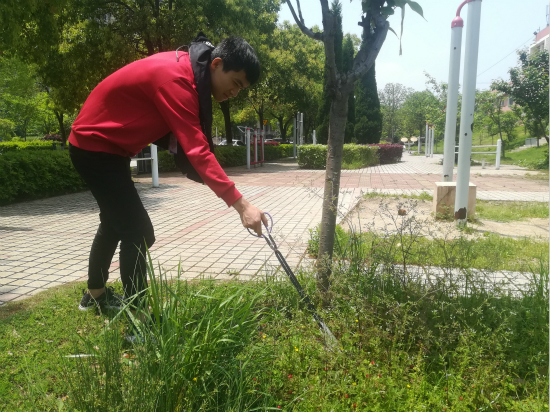 打扫汽车学院周边绿化带
