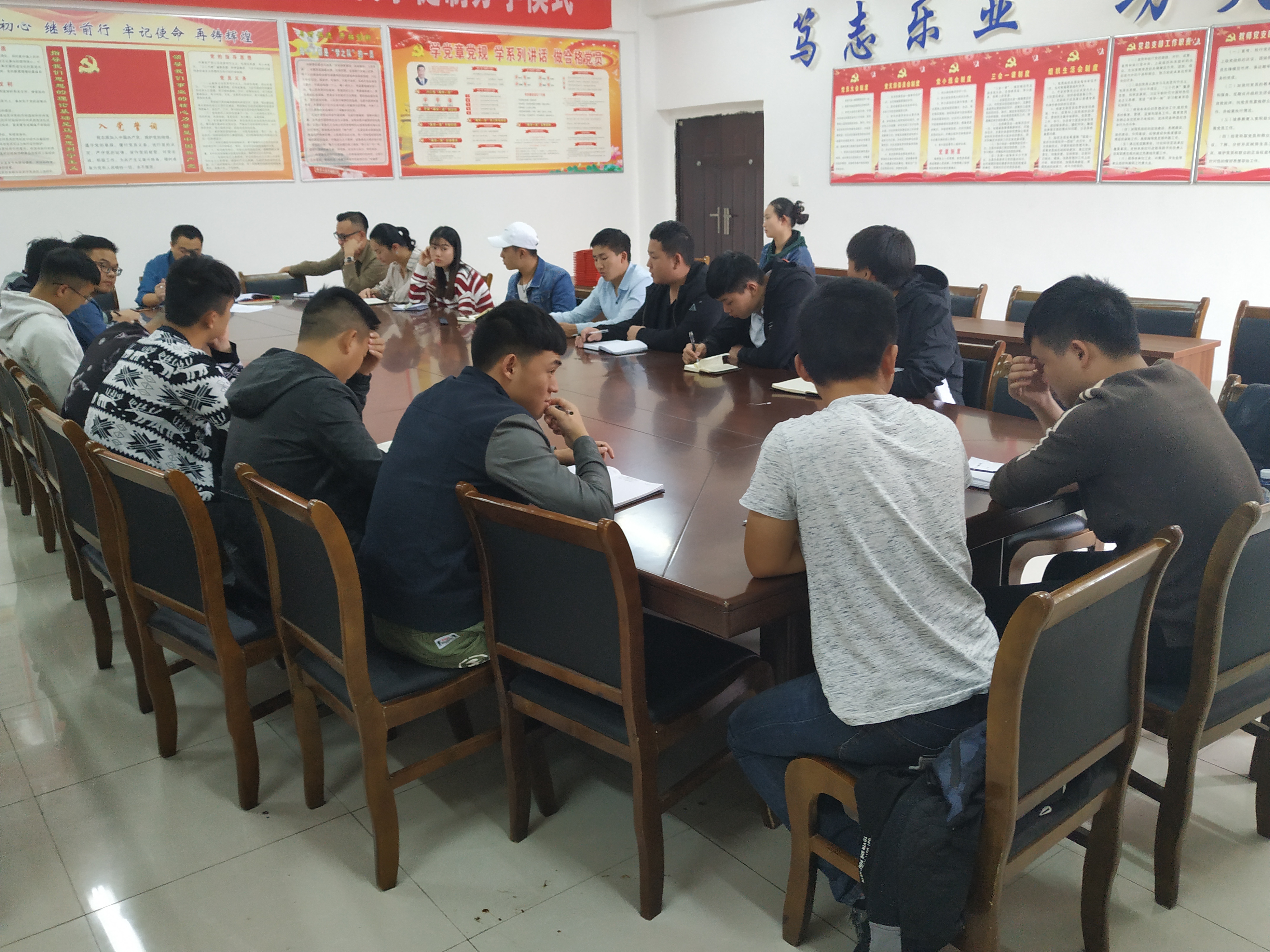 2018年11月2日中午,汽车学院11月份第一次党员小组学习会议在二楼会议室召开,本次会议主要讨论“关于党员的发展”,此次会议由学工副院长苏志华主持,参加本次会议的有匡邵君、杨庆民等15名预备党员同志。