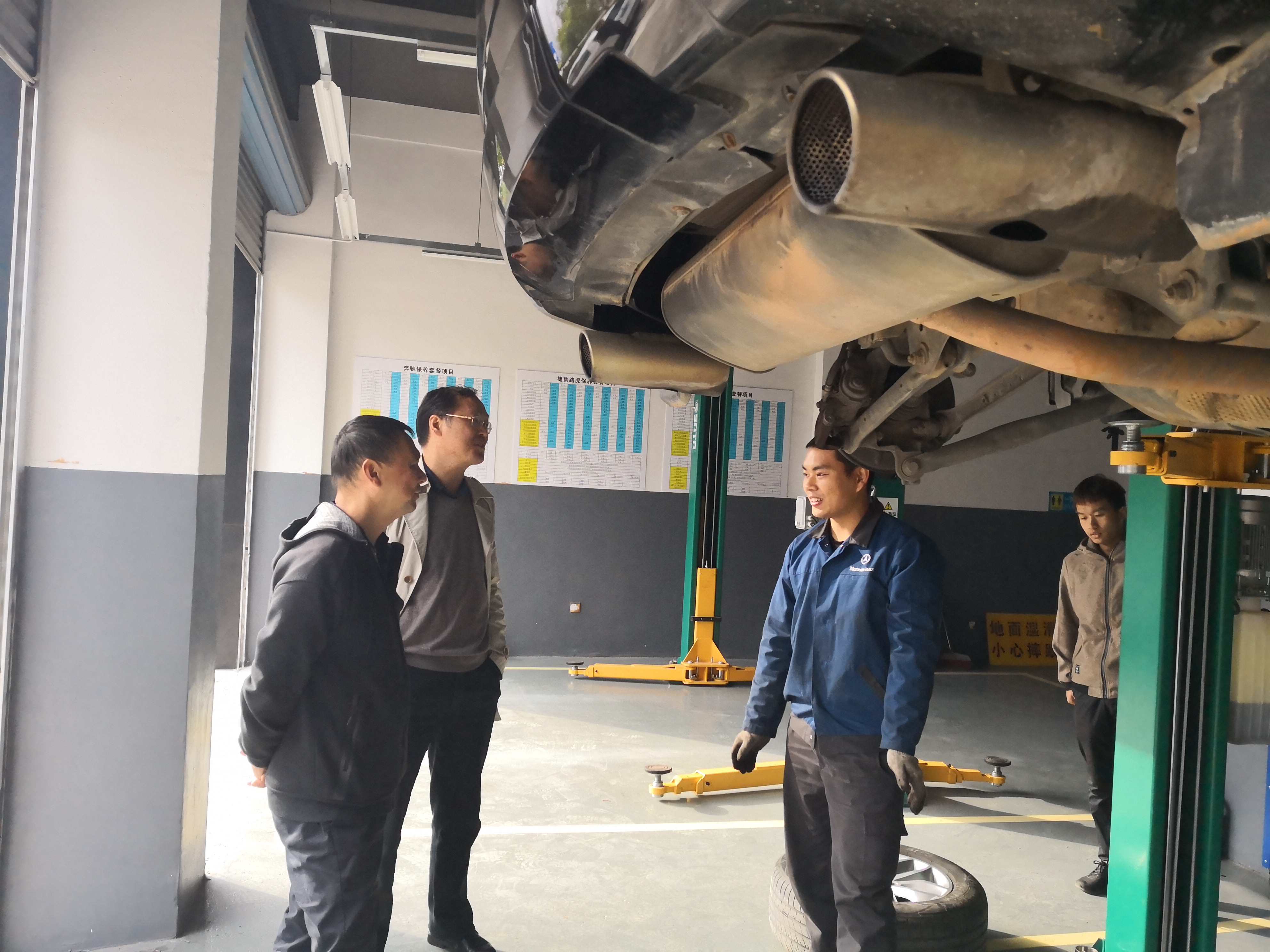 为了进一步加强我院对学徒班学生的管理工作、及时解决学生实习中存在的问题、推进校企合作进程,加强合作育人、完善教学实践环节,促进专业建设,2018年11月9日上午9时许,汽车学院院长易爱良、教学副院长左卫民和学徒制班班主任赵线然赴合作企业了解学生的工作情况。他们分别到访了捷路驰汽修、三湘汽修、五洲通程汽修、湘诚汽修以及湘豪汽修等五家合作企业。