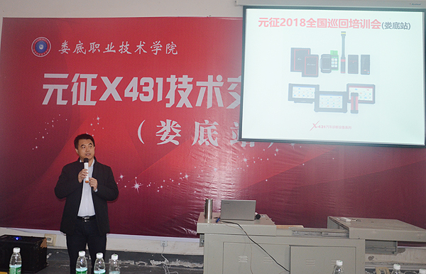 1115日上午,著名汽保设备生产上市企业,深圳市元征科技股份有限公司在我校汽车学院A106实训室举行该公司汽车诊断核心产品X-431解码器的技术交流培训会。元征公司广州分公司总经理陈永华、技术总监容启华、汽车学院全体领导班子成员、湘中片区60余家汽车销售及维修企业代表、汽车学院师生代表与会。