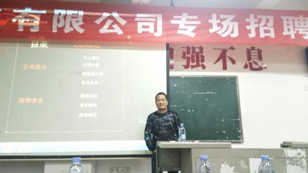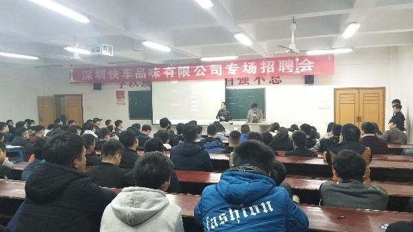 招聘会开始,快车品味服务有限公司的董事长胡伟用公司通用标语“高品质的生活静悄悄”吸引同学们的注意力,引入招聘话题。他用精炼简短的语言先宣讲了自己的公司在汽车行业的发展历程、规模的大小和企业的性质。其中说到公司性质时,他强调公司主要是以合作伙伴的形式来进行管理,在公司所迎接的挑战和机遇会很多,晋升的空间也很大。他还提到了薪资待遇和生活待遇较好,因此,相对其它公司是有较强的优势的。经过精彩的互动以及胡总的耐心解答,同学们对本次招聘会非常满意,也有不少同学将自己的简历投给了该公司。