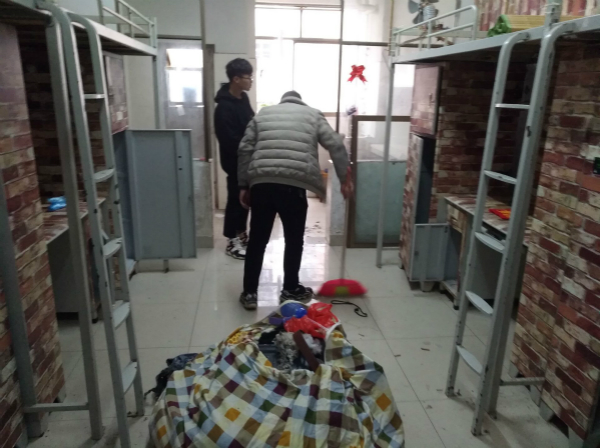 学生会认真打扫宿舍卫生