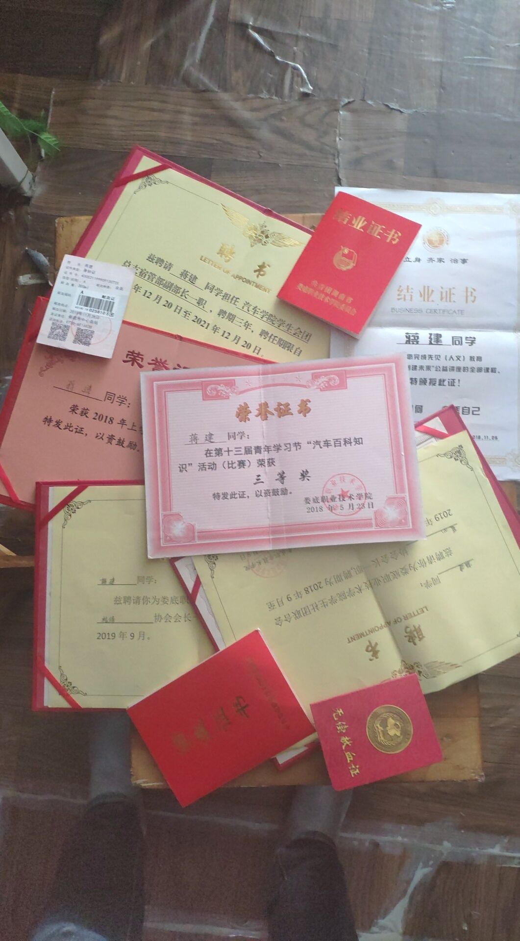 在课外的学习中,他通过阅读和实践不断的扩充自己的专业知识,积极参加各项课题学习活动,不断提高综合素质。并报名参加了社团,2018年5月报名参加汽车学院的“汽车百科知识竞赛”在比赛中荣获“三等奖”。2018年10月他在担任爱心协会会长的同时,又兼任汽车检修协会会长,他学习认真,工作上进心强,从各方面严格要求自己。