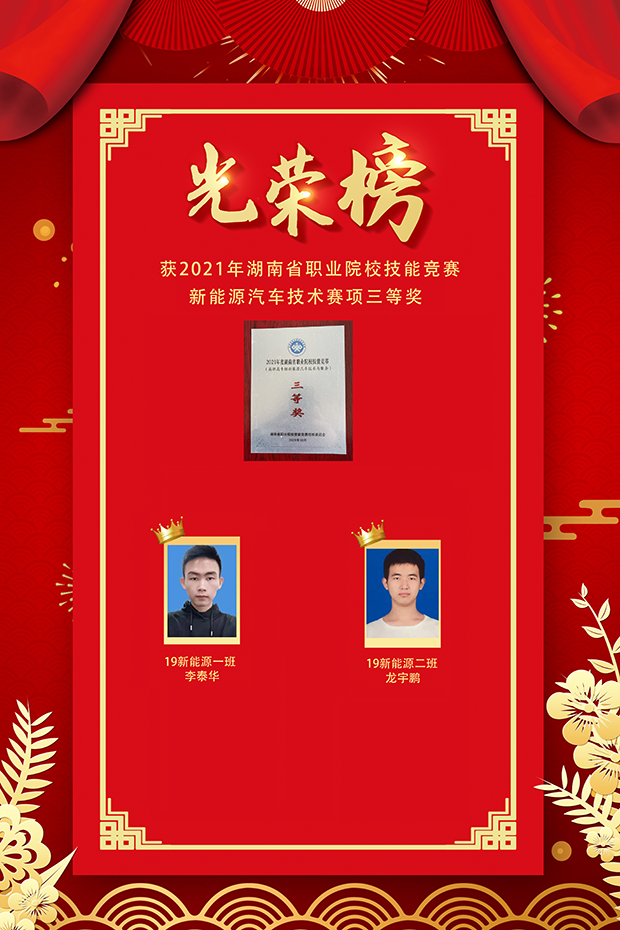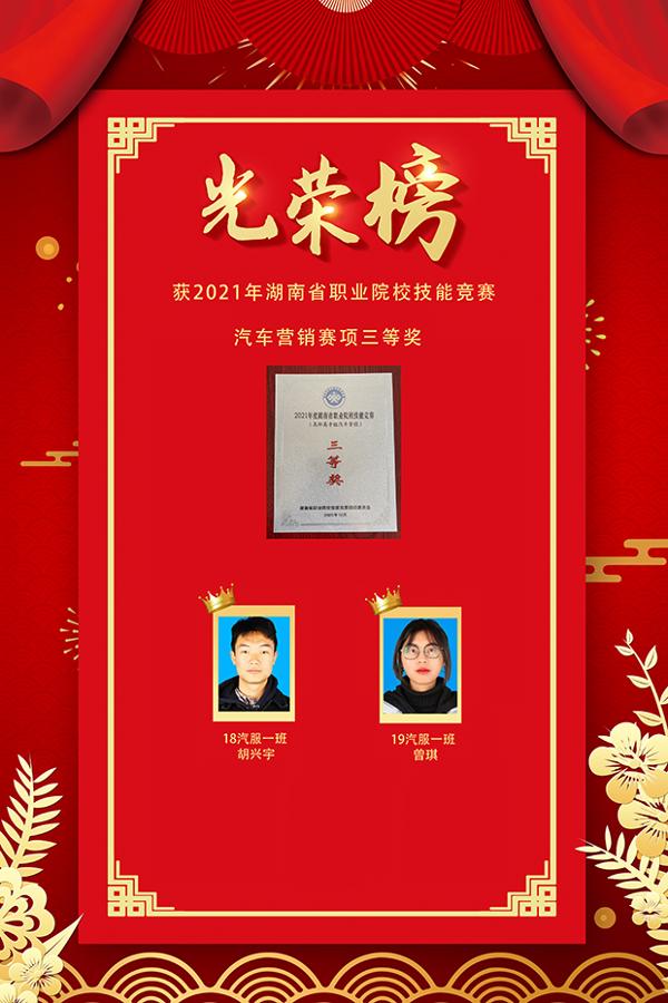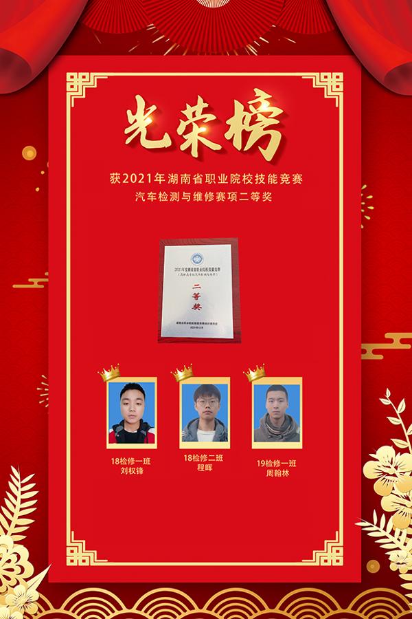 热烈祝贺以下同学在2021年湖南省职业院校技能竞赛中获奖