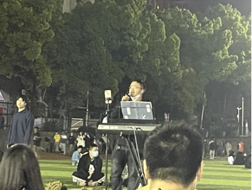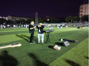 经过两场体力活动的比拼,大家意犹未尽围坐在一起欣赏吴晗、肖京京等同学的小型演唱会。李铁侠院长和吴恕老师应邀也上台演唱了自己的拿手歌曲,平日里严肃认真的李院长唱起歌来帅气又迷人,带动大家放松心情,很难让人不激动!看下图摇摆的闪光灯,妥妥的全是迷弟迷妹!