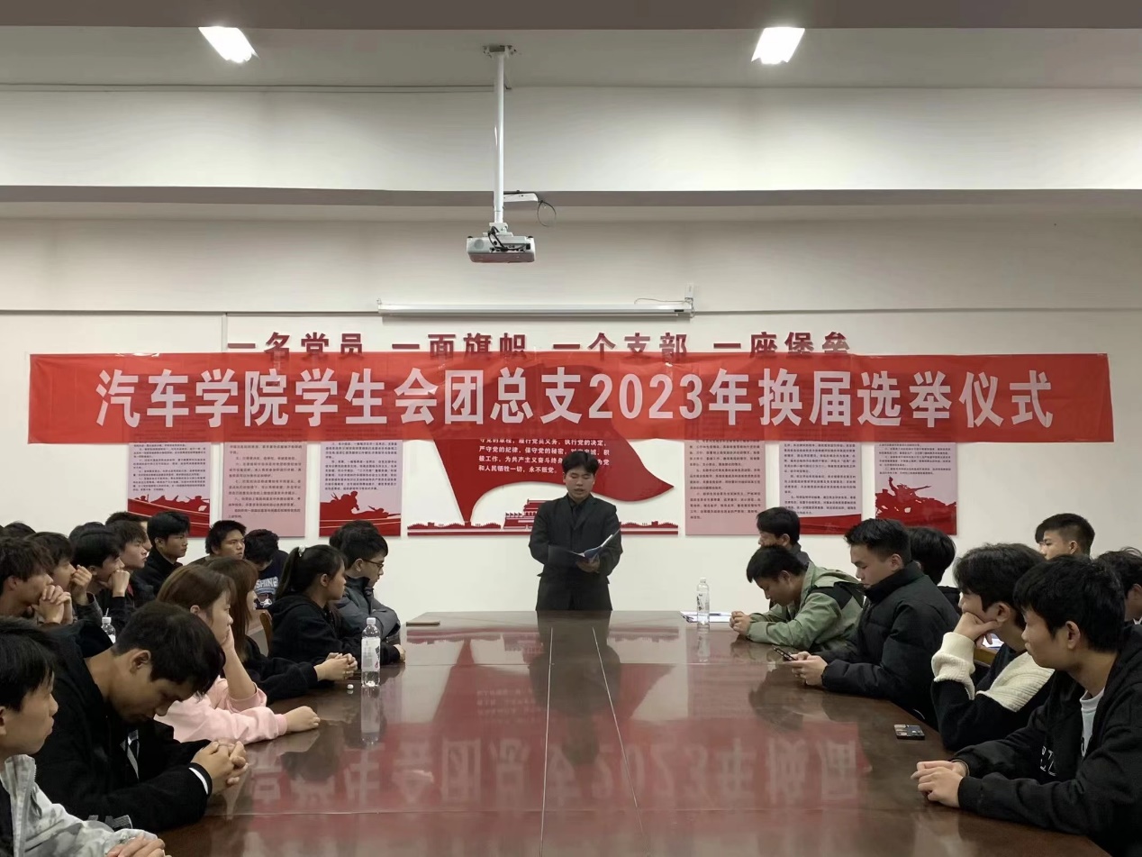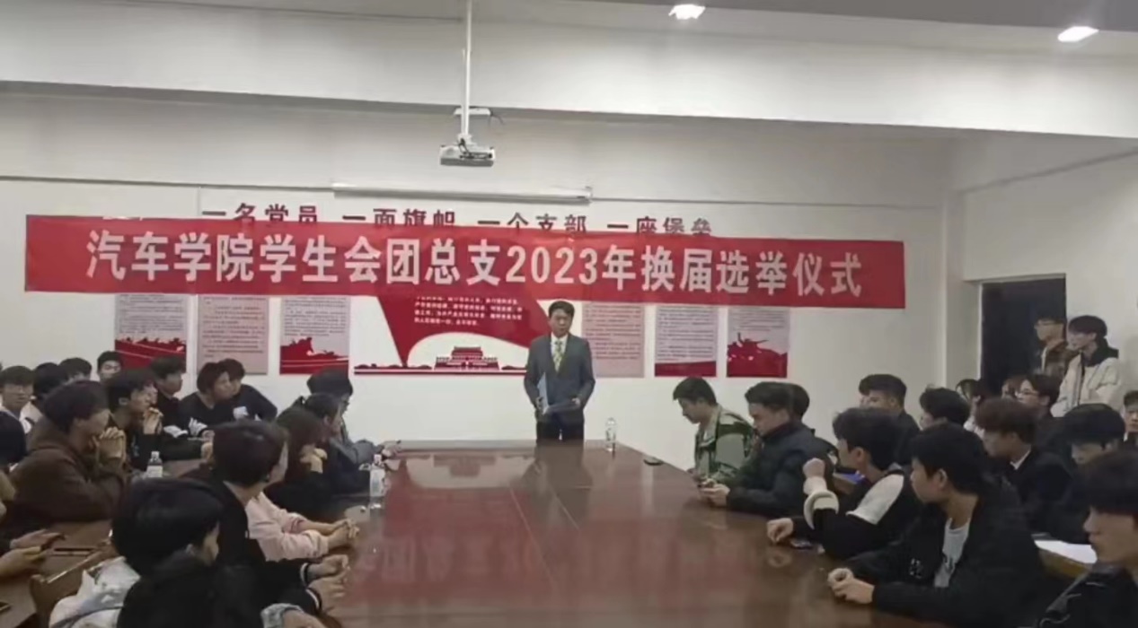 在21级学长即将离校之际,学生会为了更好的为同学们服务,做好老师的好帮手,汽车学院于2023年11月12日晚上6点30分在汽车学院会议室举行了学生会、团总支换届竞选大会。本次大会由21届学生会团副李亦龙主持,学工副院长李铁侠,学工干事吴恕,辅导员朱鹤彪,陈析宇出席本次会议。