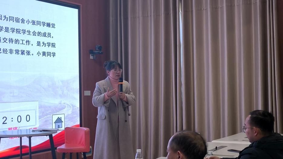 大赛结束,评委老师对我院辅导员队伍良好的精神风貌和优秀的职业素养予以充分肯定,并针对比赛中选手表现进行了点评,指出了辅导员在本次比赛表现的不足之处与可取之处。