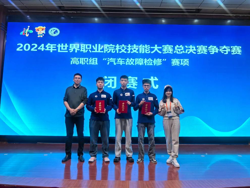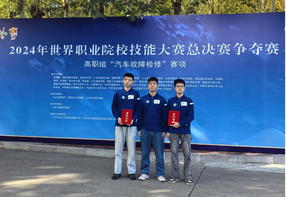 10月28日,2024年世界职业院校技能大赛总决赛争夺赛高职组“汽车故障检修”国家级赛项在山东交通职业学院落下帷幕。经过两天激烈比拼,汽车学院易向贤、彭豪两位老师指导的刘三峰、邱利民、邝代军团队脱颖而出获得铜奖。