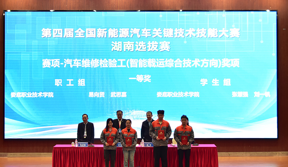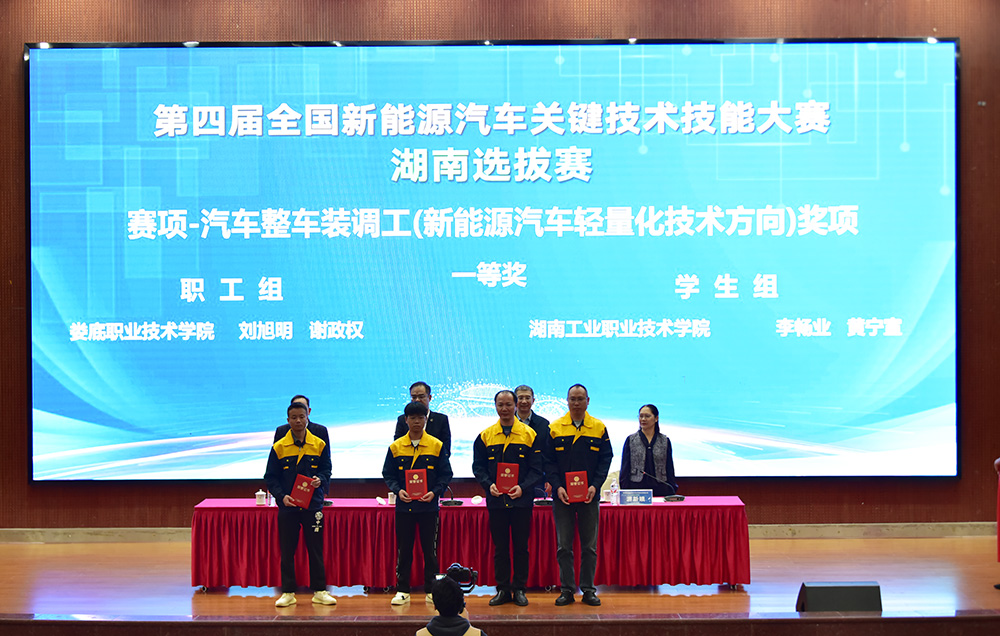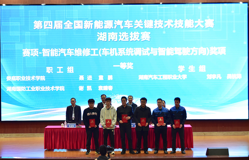 我校在第四届全国新能源汽车关键技术技能大赛湖南选拔赛中斩获9个一等奖。其中,刘旭明、谢政权获赛项-汽车整车装调工(新能源汽车轻量化技术方向)职工组一等奖,宁宏旺、谢皓宇获学生组三等奖;饶鑫豪、彭豪获赛项-汽车零部件装调工(汽车电动化技术方向)职工组一等奖,吴赛塘、李文俊获学生组一等奖;聂进、童鹏获赛项-智能汽车维修工(车机系统调试与智能驾驶方向)职工组一等奖,周锦鹏、颜圣斌获学生组二等奖;周文辉、胡欣还获赛项-机动车检测工(智能网联与车路协同技术方向)职工组二等奖,陈斌、王祖旗获学生组一等奖;陈灿波、周伍获赛项-新能源汽车维修工(节能减排与氢动力技术方向)职工组一等奖,李成富、姜家浩获学生组一等奖;易向贤、武思嘉获赛项-汽车维修检验工(智能载运综合技术方向)职工组一等奖,张慧强、刘一帆获学生组一等奖。(朱亚鹏 蒋杰)