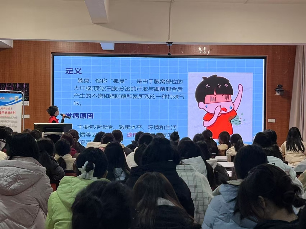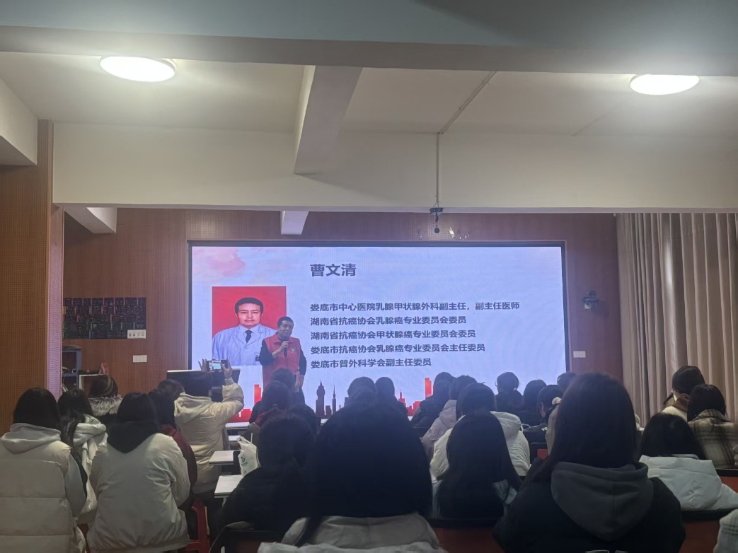 在快节奏的现代生活中,乳腺疾病逐渐成为威胁女性健康的一大隐患,其发病率逐年上升,引起了社会各界的广泛关注。为深入传播乳腺保健知识,提升公众对乳腺健康的认知,2025年3月6日在创客空间开展了“关爱乳腺健康 青春与温暖同行”—娄底市中心医院进校园乳腺健康科普宣传与义诊活动,为女同学提供科学、实用的健康指导。