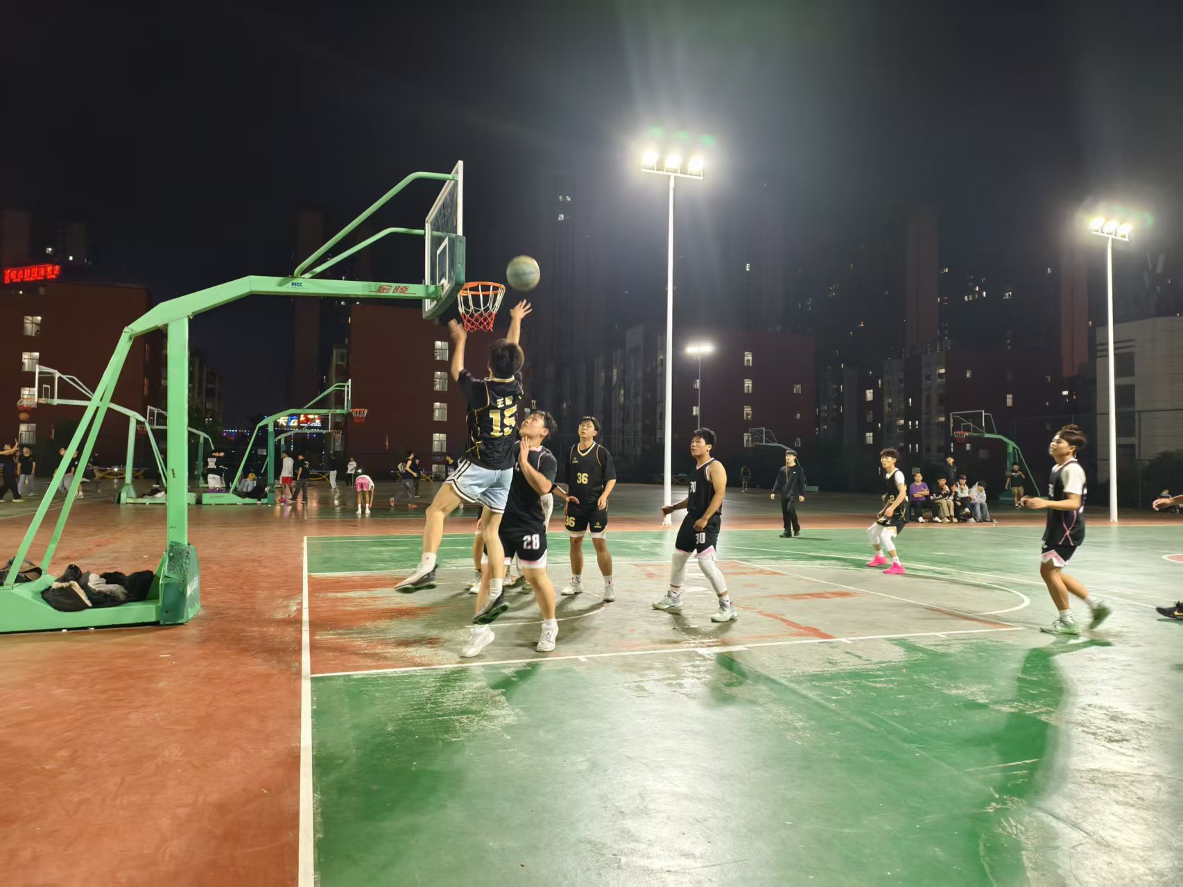 一场激烈的篮球赛拉开序幕。同学们分为两队,展开了激烈的对抗。赛场上,队员们灵活的走位、精准的传球和果断的投篮,赢得了场边同学的阵阵喝彩。无论是进攻时的默契配合,还是防守时的顽强拼搏,都充分展现了同学们的团队精神和竞技水平。最终,比赛在紧张而友好的氛围中结束,双方队员都表示通过这次比赛增进了彼此的了解和信任。