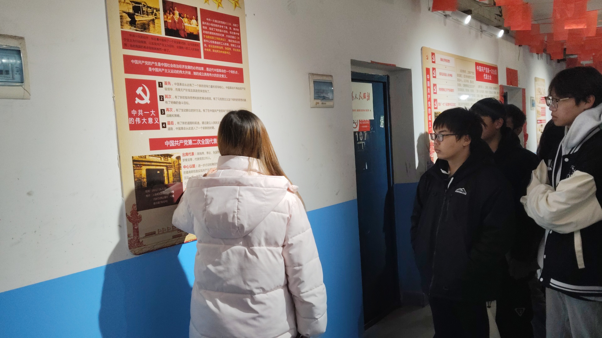 为深入学习贯彻党的二十大精神,引导青年学生学史明理、学史增信、学史崇德、学史力行,12月24日中午12时45分,汽车学院宿管部与青工部在14栋一楼联合开展了党史学习教育。