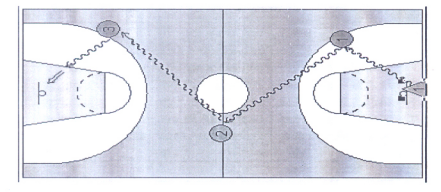 图3-1 多种变向运球上篮示意图