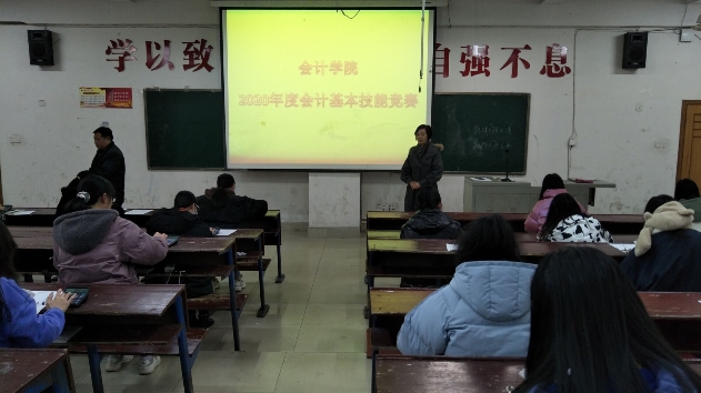为提高同学们的专业学习兴趣,检验会计、财管专业学生会计基本技能---传票算的水平,2020年12月30日晚,商学院在主教学楼110教室举行了会计基本技能---传票算竞赛活动,2019级财管1、2班和2020级会计1-6班共八个班级约50名选手参赛,党总支书记、院长蒋美群、教学副院长肖宏华亲临现场指导比赛。