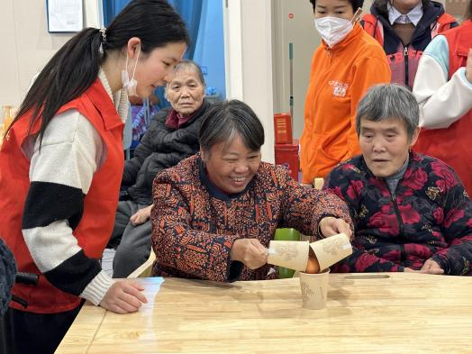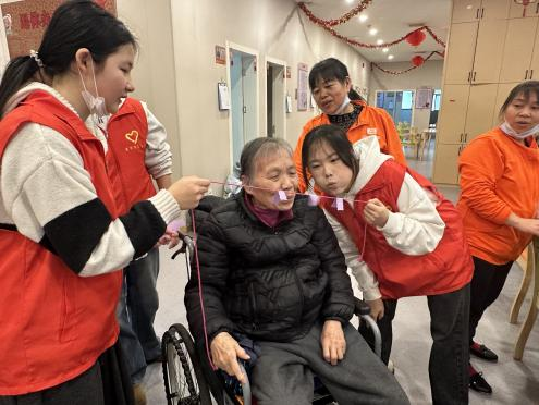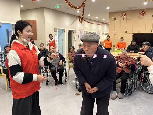 志愿者们还为老人们带来了丰富多样的趣味游戏《咆哮吧!肺活量》、《苍蝇拍》及《快!准!稳!》在游戏中,老人们和志愿者们互相配合,默契十足。趣味游戏不仅丰富了老年人的闲暇生活,还能起到运动锻炼的作用,增强老人的体质。