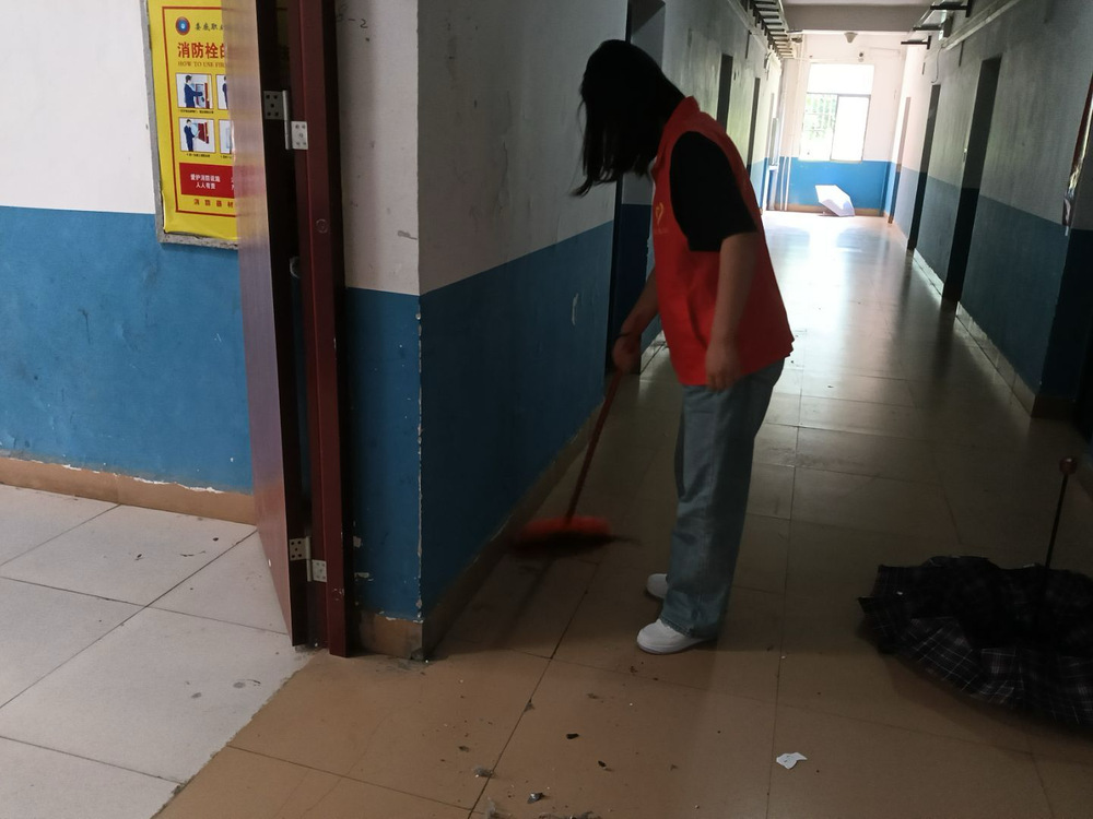 活动过程中,同学们手持扫帚、抹布、水桶等清洁工具,根据活动安排快速投入清扫工作。同学们在各楼层的清扫过程中,不放过任何一个卫生死角,同学们弯腰细致打扫楼梯转角、墙缝中的灰尘与垃圾及楼道内堆积的杂物,让通道变得宽敞整洁。经过大家的辛勤劳动,宿舍楼内的环境焕然一新,在清扫过程中,大家不怕脏、不怕累,充分展现出积极向上的精神面貌,许多同学表示为人民服务不是一句空话,要从身边小事做起,用实际行动传递温暖。