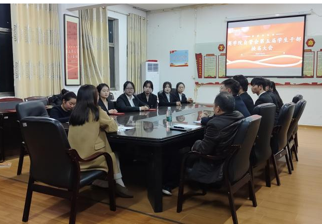 为进一步加强学生组织建设,充分发挥学生干部的先锋模范作用。11月20日,商学院自管会在实训楼207会议室举办第五届学生干部换届大会。参与本次活动的有商学院学工副院长周雯婷、学工干事李祖湘、各班辅导员及学生干事。