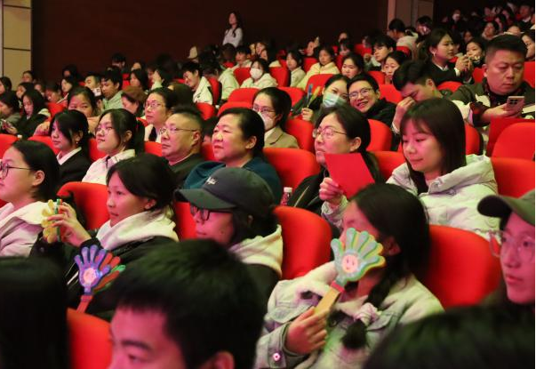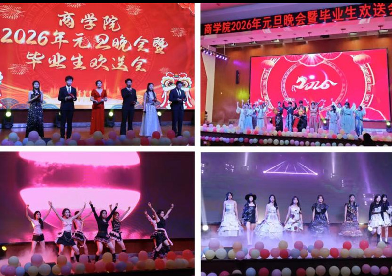 12月12日19:00,商学院2026年元旦晚会暨毕业生欢送会在新培楼学术报告厅隆重举行。莅临晚会现场的领导嘉宾有商学院党总支书记禹云、党总支副书记周晚华、教学副院长郭赞伟、学工副院长周雯婷、辅导员老师和学生代表。