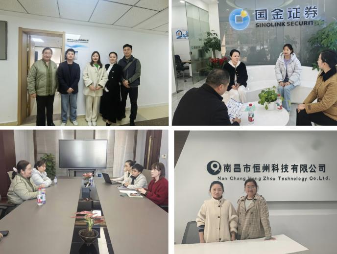 为深入贯彻落实高校毕业生就业工作决策部署,精准对接企业用人需求,拓宽毕业生就业渠道。12月8日-10日,商学院学工副院长周雯婷率毕业班辅导员及专业教师一行,先后赴南昌海璞电子商务有限公司、江西社鸣科技有限公司、南昌风之海文化有限公司、江西南昌国金证券、中国光大银行南昌分行北京东路支行、江西李渡酒业有限公司、江西君道医疗器械有限公司、江西捷达人力资源有限公司、江西南昌市恒州科技有限公司等多家优质合作企业开展“访企拓岗促就业”专项走访调研活动。此次活动主要对接学院下设的电子商务、财务管理、会计、金融管理、市场营销等专业,旨在精准挖掘岗位资源,优化人才培养体系。