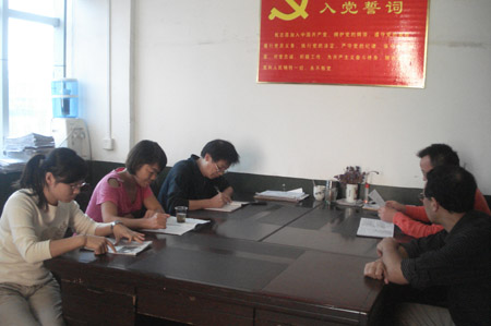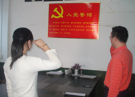 10月15日下午三点半,在思政课部办公室举行思政课部预备党员入党宣誓仪式。仪式由思政课部党支部书记周旺东主持,系部副主任贺山青、思政课部教师龙灿玲、李树生到会。会上周书记表达了对预备党员肖希蓉的欢迎,同时也提出了新的要求和期望。支部其它成员也依次表达了对新党员的欢迎,并预祝思政课部党支部越来越壮大,越来越好。(思政课部)